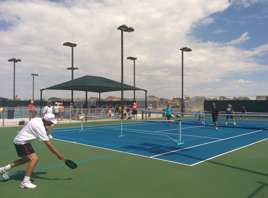 Demonstration game on the new pickleball courts